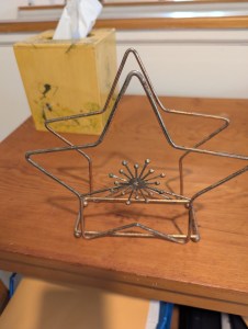 I spent nearly the entire day working in the attic with little to show for it. I’m emotionally attached to so many objects. For instance I blogged about this napkin holder in 2021 and Clare said she wanted it but for some reason I still have it! I’ll take it to her when we visit next week. I spent so much time in turmoil wondering what to do with it that I didn’t have much energy left to look at anything else. I’m a mess that way.